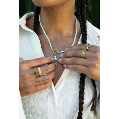 Aqua Beaded Necklace With Pearl Charm