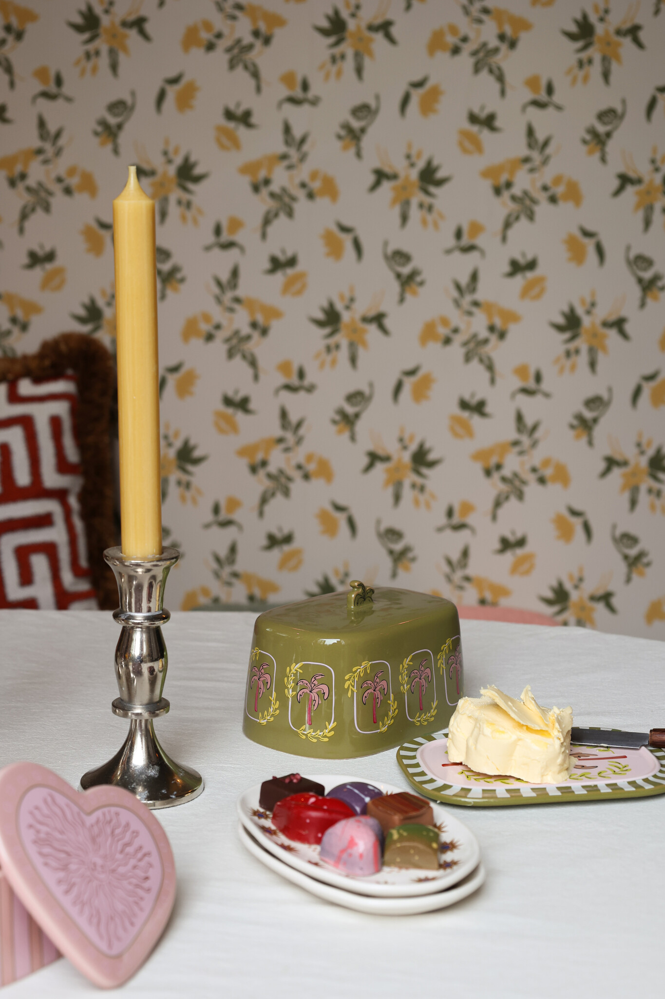 Bring a touch of color to your table with this palm tree butter dish