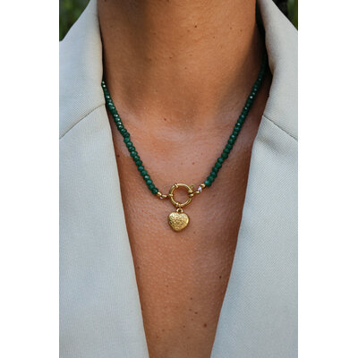 Green Beaded Necklace With Heart Charm