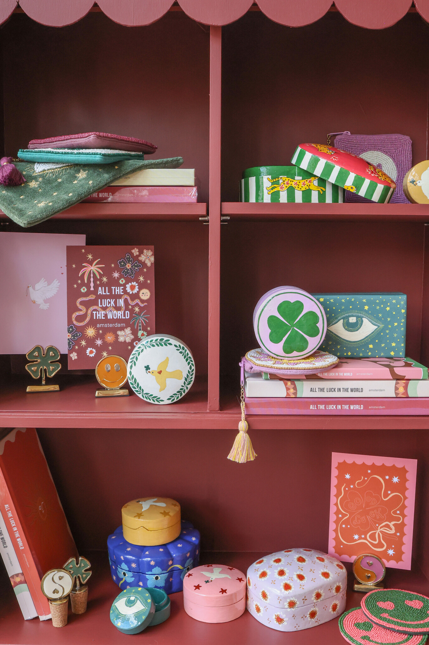 Designed by our creative All the Luck in the World Design Team, this collection features a playful mix of handmade accessories that add color and personality to everyday life. From shimmering beaded coin purses and delightful keychains to hand-painted papier-mâché bowls. Each piece is crafted with care and attention. The vibrant colors, whimsical patterns, and distinctive finishes make every item feel truly special. Perfect for brightening up your keys, storing coins in style, or keeping your favorite jewelry in a decorative bowl. Whether you’re treating yourself or looking for a thoughtful gift, the Little Treasures Collection is made to bring a smile to any occasion.