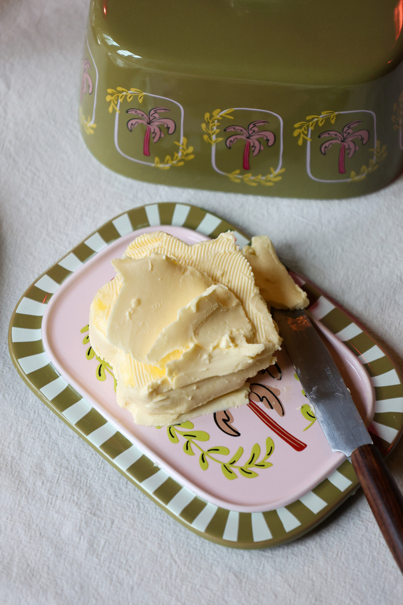 Een kleurrijke botervloot met speelse palmboom details